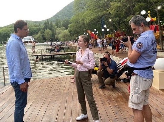 Журналисты прошлись по Каскадной лестнице, осмотрели Курортный парк и благоустроенную набережную Курортного озера, которую реконструируют по программе «Комфортная городская среда».